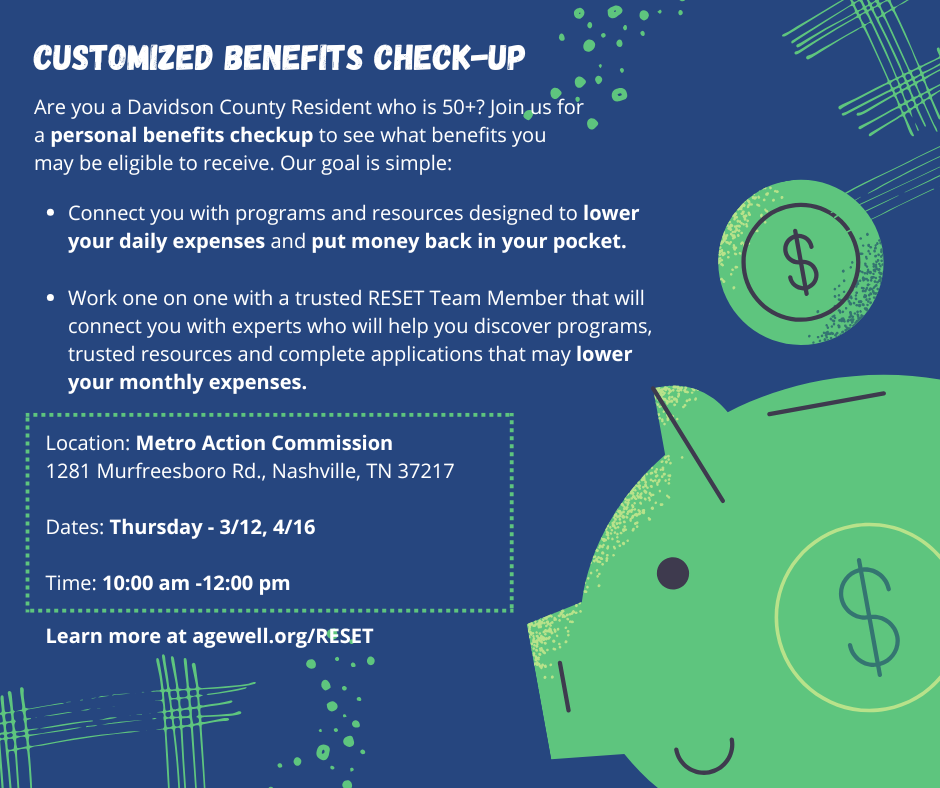 We've also been meeting with Davidson County residents 50 and older, giving them a benefits check-up in partnership with our RESET partners. Make sure you check out our RESET Impact Report to see how many community members we've already helped. Did you know the average financial benefit per RESET client is $884?