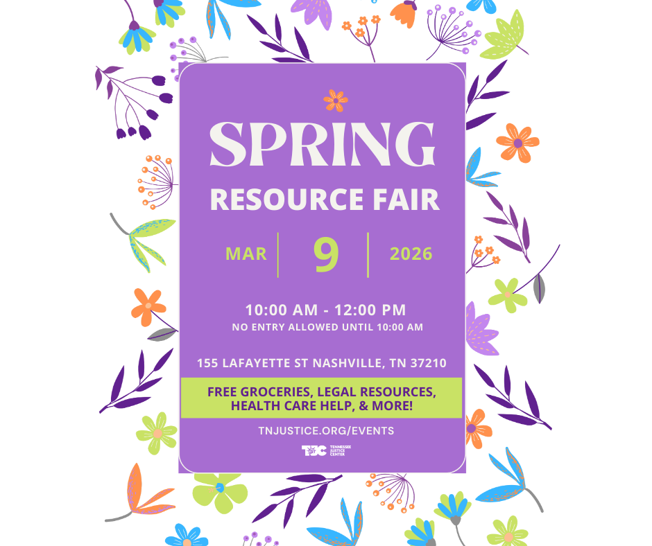Join AgeWell at the Spring Resource Fair, hosted by Tennessee Justice Center, on Monday, March 9 from 10 a.m. - 12 p.m. at 155 Lafayette Street. Free groceries, clothing, healthcare resources, and other vital resources will be available. NO REGISTRATION NECESSARY. For more information, visit tnjustice.org/events.